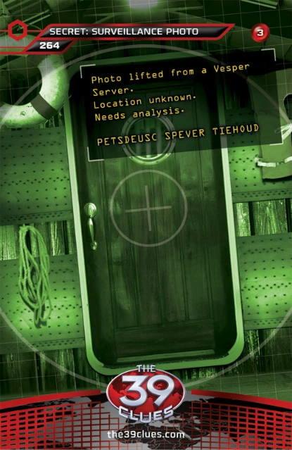 This photo was intercepted by the Cahill intelligence team, but the location hasn't yet been identified. However, they suspect it has something to do with the Cahills' dangerous new enemy: the Vespers.