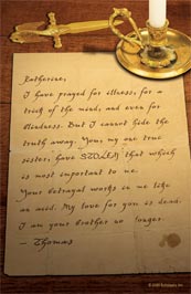 "Clever Katherine was excited to leave home and explore the world. With her beloved brother, Thomas, by her side, she was prepared to do great things. But Thomas didn’t live up to her expectations-–he had his own goals and his own plans for building a life. Hurt by this seeming betrayal, Katherine abandoned her brother in the middle of the night and fled to Egypt–-taking his most prized possession with her."