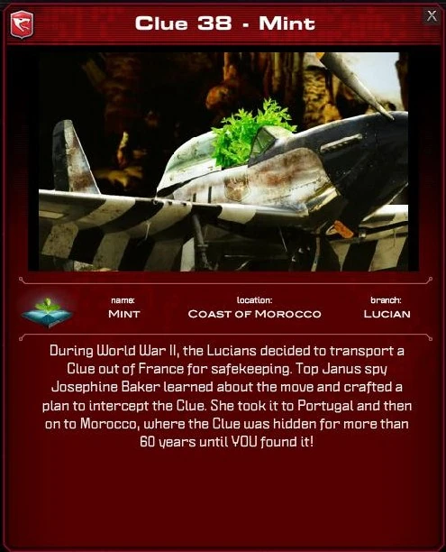 During the World War II, A Lucian clue was stolen from France. The Cahills suspected it was Josephine Baker, a great entertainer and a Janus agent.