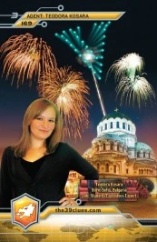 "Growing up in Bulgaria, Teodora didn't have access to the same resources as young agents in real Ekat hot spots around the world. However that didn't stop her from devoting herself from the Clue hunt, using every opportunity to conduct research and follow leads. While on a class trip to London, she sneaked off to explore the Tower of London, a known Lucian stronghold. Teodora was obsessed with the 39 Clues but her allegiance with the Ekaterina is questionable. She has ties with the Vespers--the only other group in the world who knows about the Clues."